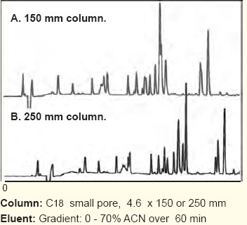 但是對于小分子多肽,往往長柱比短柱的分離度大,這點類似化學(xué)小分子。