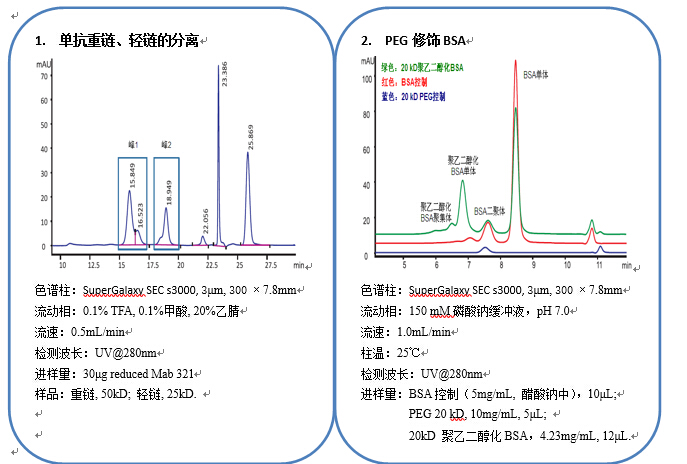 SuperGalaxy系列體積排阻色譜柱采用單分散、球形、表面鍵合了一層納米厚度中性親水薄膜的3μm硅膠作為填料。獨有的表面鍵合技術保證了填料表面鍵合的最大化,使其具有極高的化學穩定性和最小的非特異性吸附