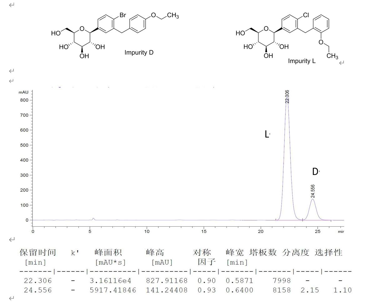 菲羅門色譜柱分離達格列凈雜質(zhì)D和L