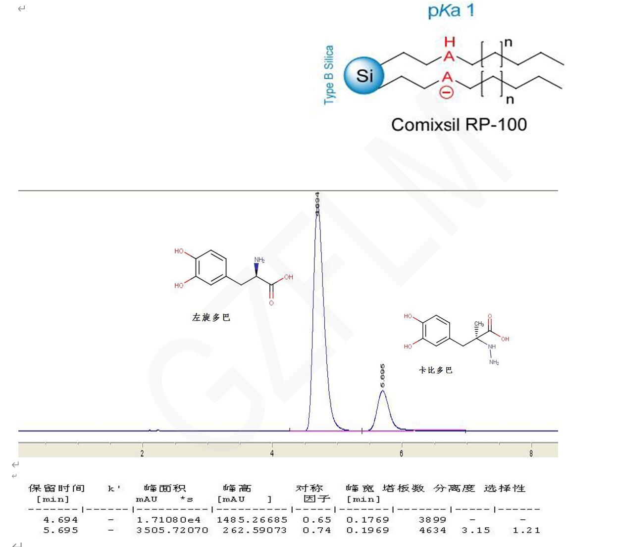 Comixsil RP-100 混合模式分離卡比多巴與左旋多巴