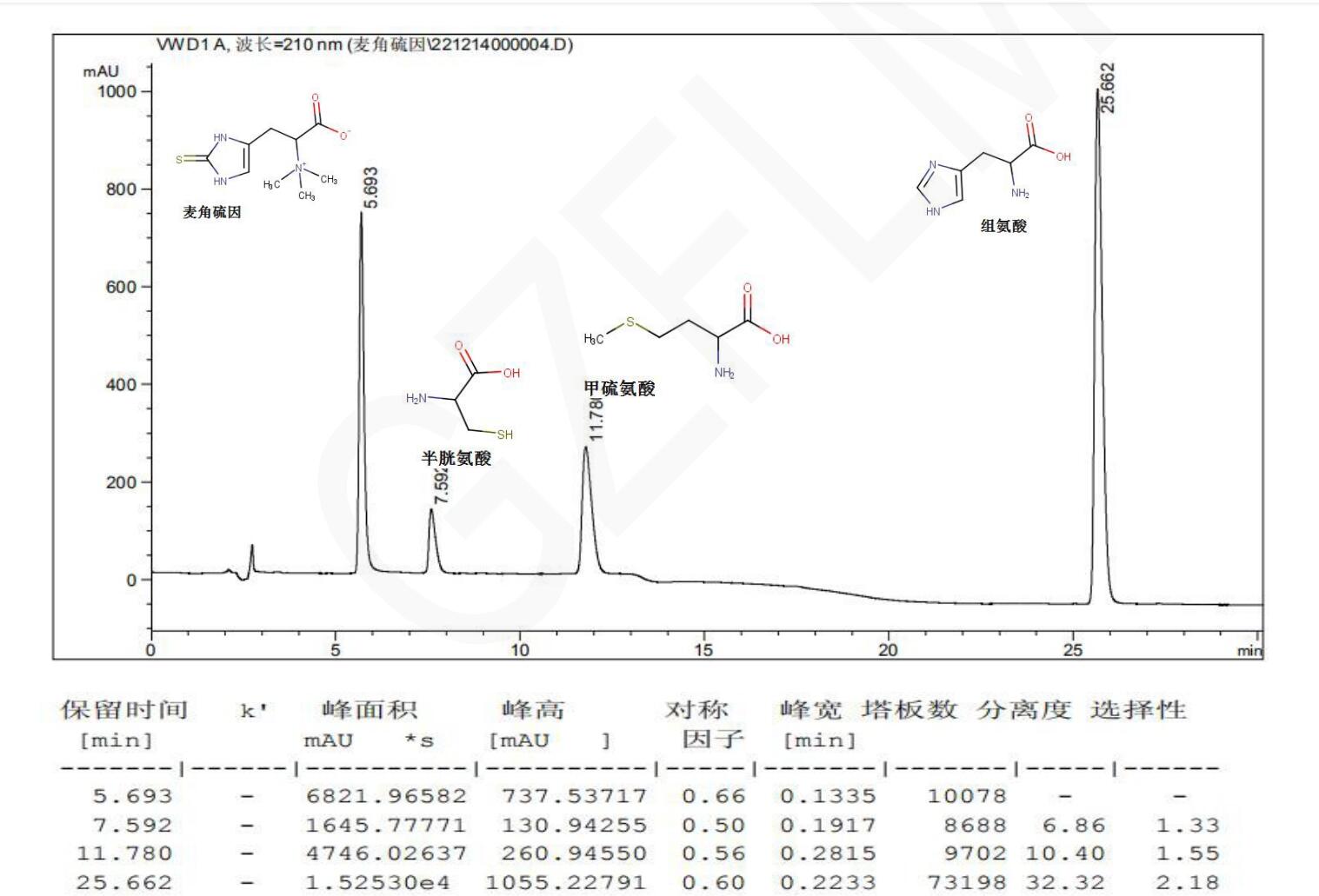 SuperLu SCX 分離麥角硫因、半胱氨酸、甲硫氨酸及組氨酸