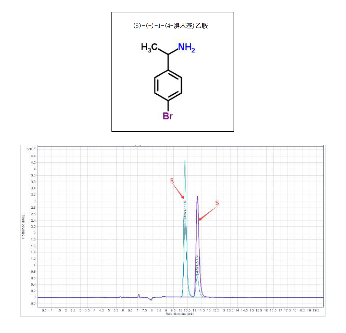 App ID: FLM-B250010 R,S(+)-1-(4-溴苯基)乙胺的手性分析 色譜柱:Chiral MJ(2) 250 × 4.6 mm,5 μm 貨號(hào):FMG-AC5-B03-NFC 流速:0.5 mL/min 波長:230 nm 柱溫:25 ℃ 進(jìn)樣量:1 uL 樣品濃度:N/A 流動(dòng)相:咨詢銷售 色譜圖: