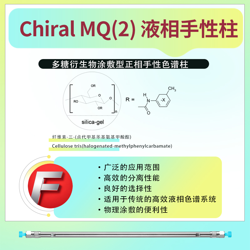 對(duì)于Chiral MQ(2)來說,它可能屬于某一特定類型(如纖維素型或環(huán)糊精型等),并具有該類型手性色譜柱的通用特點(diǎn),如高選擇性、高分辨率等。同時(shí),它也可能具有一些獨(dú)特的設(shè)計(jì)或優(yōu)化,以提高其分離性能或適用范圍。