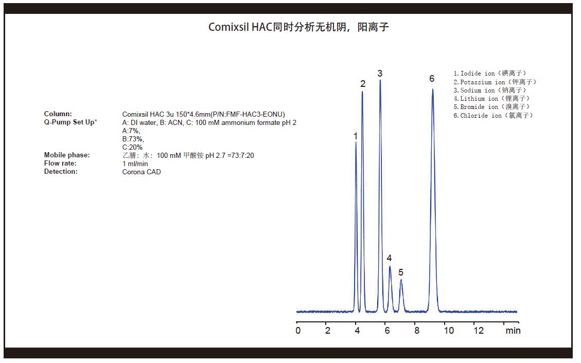 Comixsil HAC 液相方法分離鈣與鋅離子