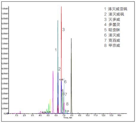 圖 2 添加水平為 0.05mg/kg 黃瓜中氨基甲酸酯類農(nóng)藥多殘留檢測(cè)色譜圖