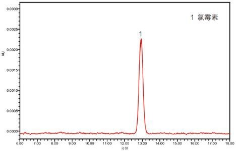 2、添加水平為 0.5mg/kg 豬肉基質(zhì)中氯霉素(CAP)檢測色譜圖