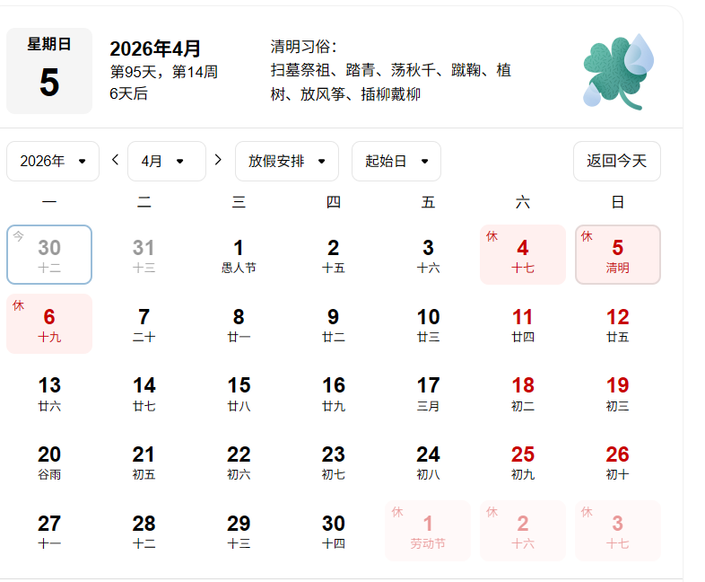 2026年清明節(jié)4月6日(星期一)放假一天。